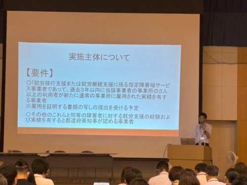 令和7年8月5日 『就労選択支援に関する研修会』を開催しましたので、ご報告いたします。令和7年10月1日より、障害者本人が就労先・働き方についてより良い選択ができるよう新たなサービス(就労選択支援)が開始(旭川市では就労選択支援事業をする事業所が制度開始に合わせてできるかは未定ですが)されます。適切なサービス利用やサービス提供ができるように、支援者同士の共有の場を設定させていただきました。当日は、就労系障がい福祉サービス事業所、相談支援事業所、特別支援学校、行政の方等全部で131名の方にご参加いただきました。